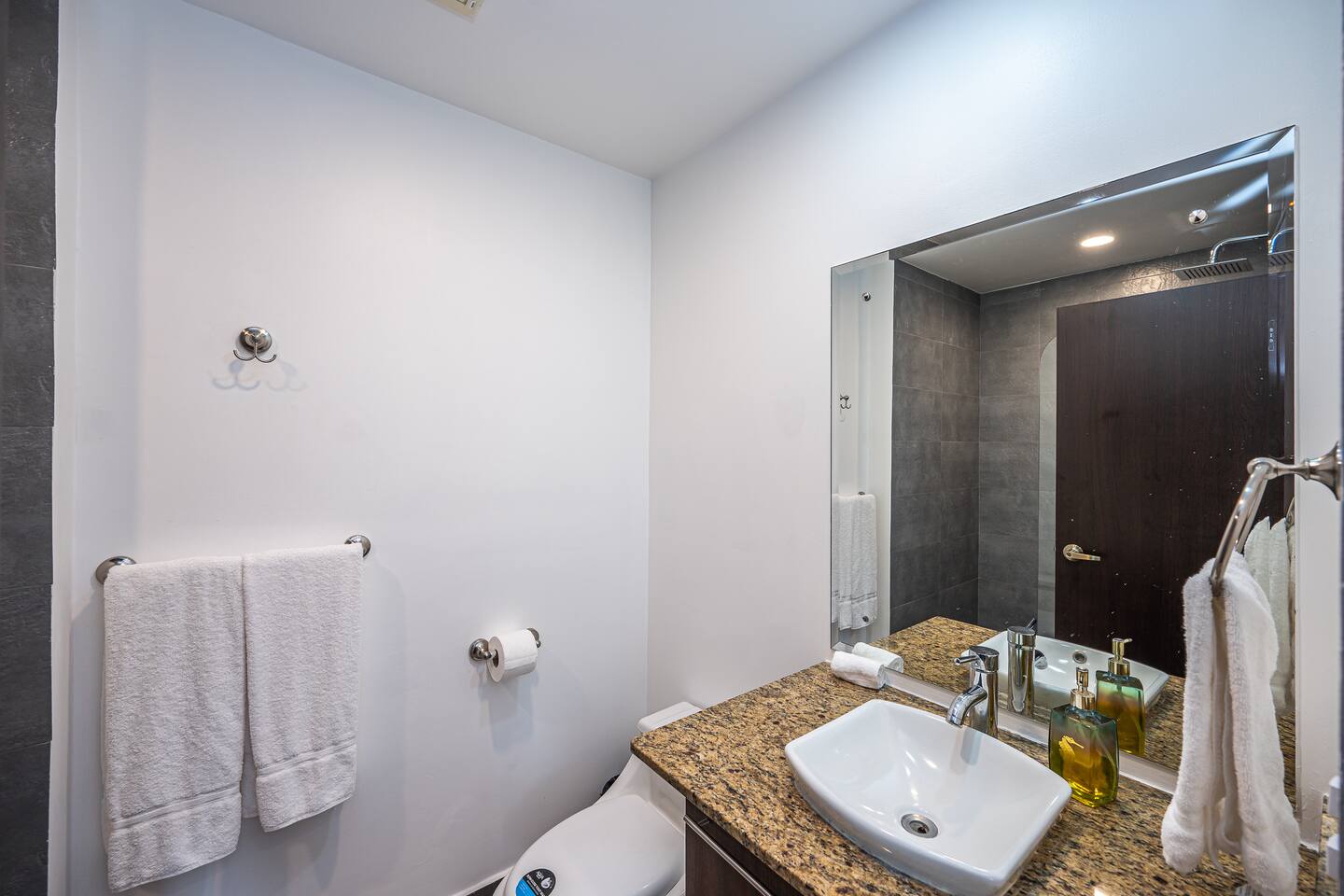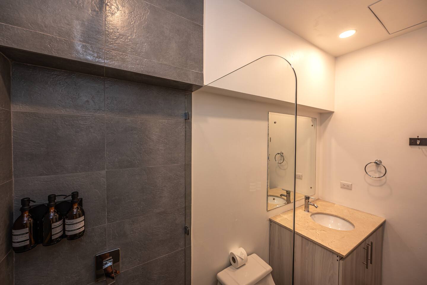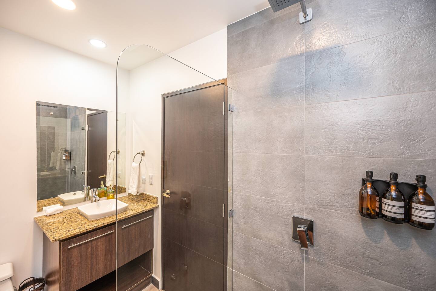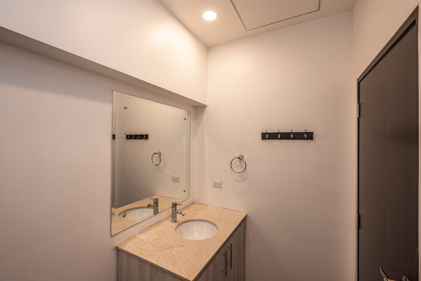 There are 7 bedrooms. One of those is a loft above the main living areas. It has a king bed and private bath. There is a master bedroom with a king bed and private bath. There is one bedroom with two twin beds and another room with a king bed. These two rooms share a bathroom. At the other end of the penthouse are two bedrooms with king beds that share a giant bathroom. There is a very small room with bunk beds off this bathroom. This condo is Rockstar cool. It is a full two stories and has 30-foot ceilings and is very modern. There is a large kitchen with bar seating for 8. The kitchen has everything you might need. The condo has 12 air conditioners. There is a large televisions with Netflix and other smart tv apps. We have fast internet and seamless WiFi throughout. This is the perfect in-town location. The pool is massive and beautiful. There is three jacuzzi tubs along with one of the largest swimming pools I have ever seen. This penthouse has a balcony that is 80 feet long with views of the Pacific ocean, the mountains and all of Jaco. This property will be the backdrop of a vacation you will never forget