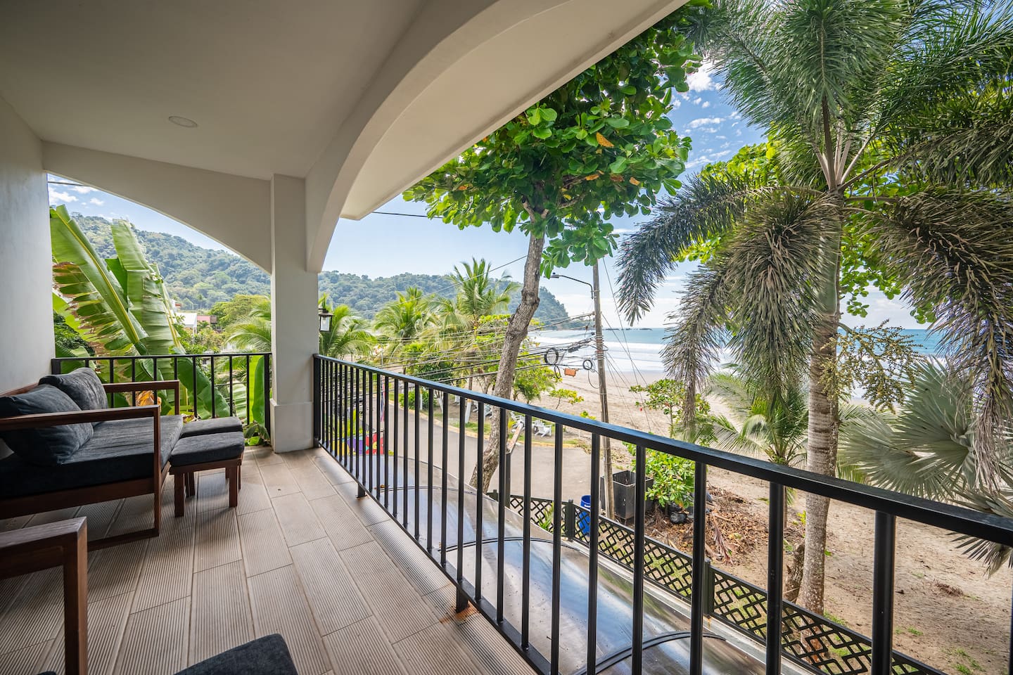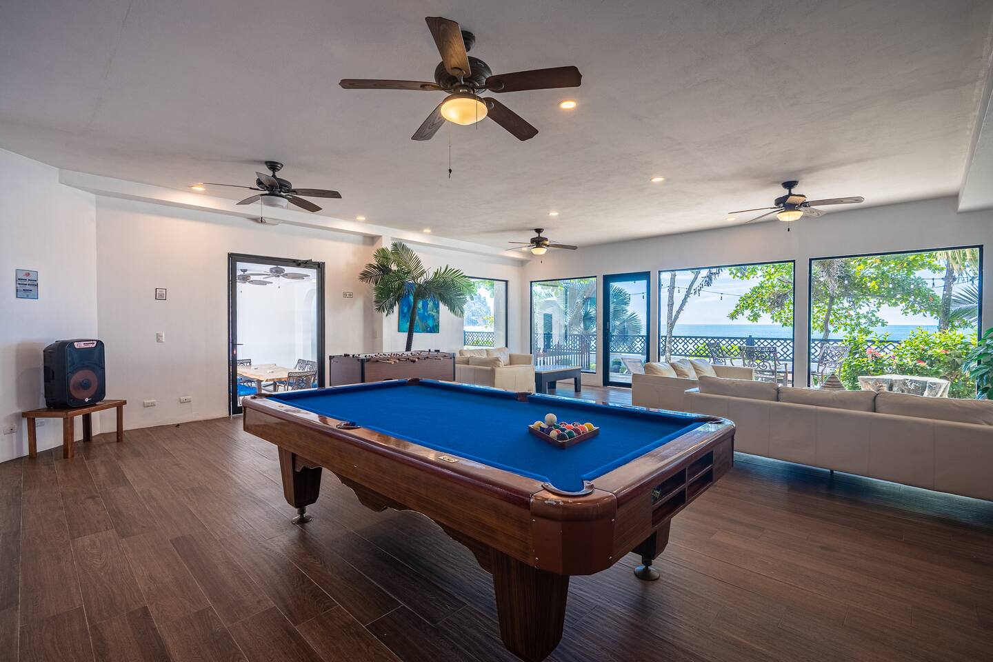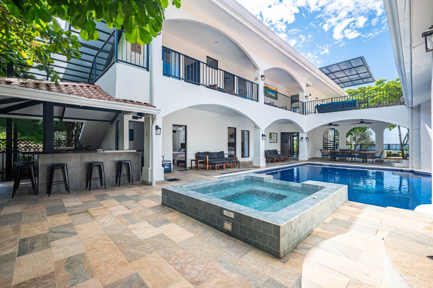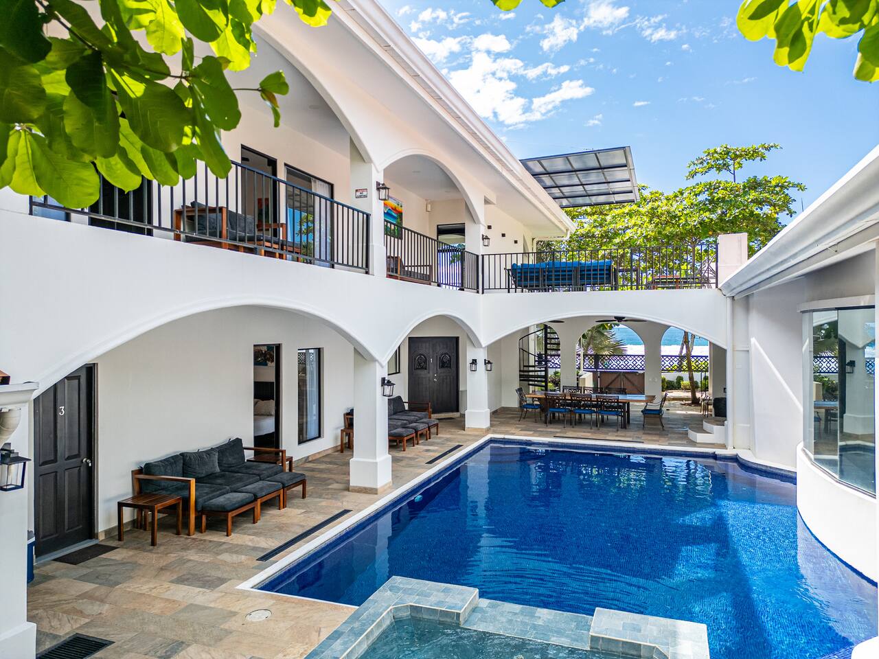 Costa Rica Elite offers this Enchanting beachfront paradise located on the south end of Jaco combining elite beach access and views with luxurious indoor and outdoor living areas. The house includes 11 bedrooms, 16 beds, 13 bathrooms, outdoor bar next to a pool and jacuzzi, indoor pool and foosball tables, spacious kitchen with ocean views and 2 master bedrooms. Perfect for large parties and groups, bachelor parties, family reunions, retreats, etc *Guest friendly Book direct for best price