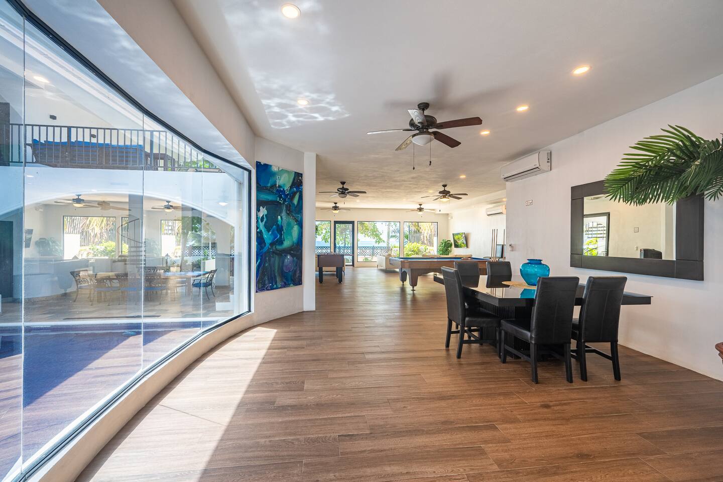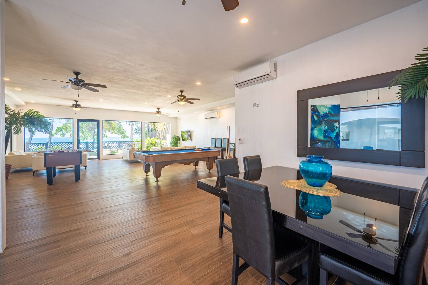 Step into a perfect Costa Rican paradise when you book Casa Playa Del Rey. There’s no better location or design for a luxurious, relaxed, fun-filled beach vacation. With intimate and exquisite views of the ocean from the outdoor bar, jacuzzi, pool, kitchen, living/dining room and master bedroom, plentiful outdoor living areas and an indoor pool & foosball table, there is nothing lacking from this magical location. Although the house is situated right on the beach, there is enough privacy and plenty of safety measures to feel safe and comfortable. Each of the 11 bedrooms have air-conditioning, private bathrooms, televisions, and a safe box. There are additional half-baths in the main living area and outside next to the pool. The large, open, fully equipped kitchen is perfect for chef-service or private entertaining. Speedy WIFI is accessible all throughout the house. The house offers both indoor and outdoor dining areas and plenty of lounging areas with prime views of the ocean. While Costa Rica Elite can arrange all desired tours, adventures, and experiences, having such a luxurious beachfront lodging leaves nothing more to be desired. Concierge services, daytime maintenance, daily light housekeeping and an overnight doorman are all included!